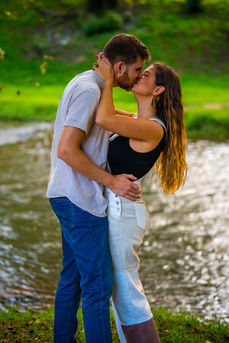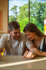 Marc and Mary's story is a beautiful reminder that the best love stories are built on a foundation of friendship and a great sense of humor. These two are high school sweethearts who have been side-by-side since the beginning. In a nod to where it all started, they took their original high school prom pictures at a Wendy’s. It was only fitting that when we met for their engagement session in the fall of 2022, we headed right back to Wendy’s to recreate that magic before exploring the scenic trails of Yahoola Creek Park in Dahlonega.